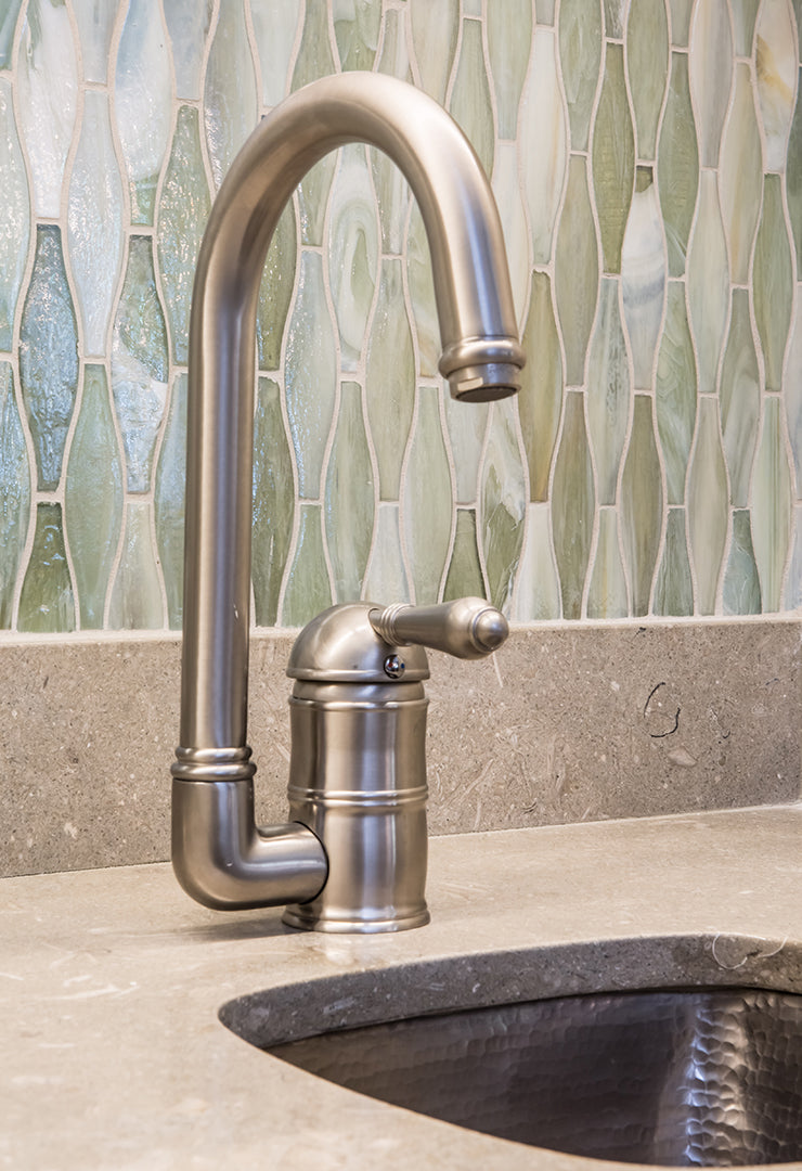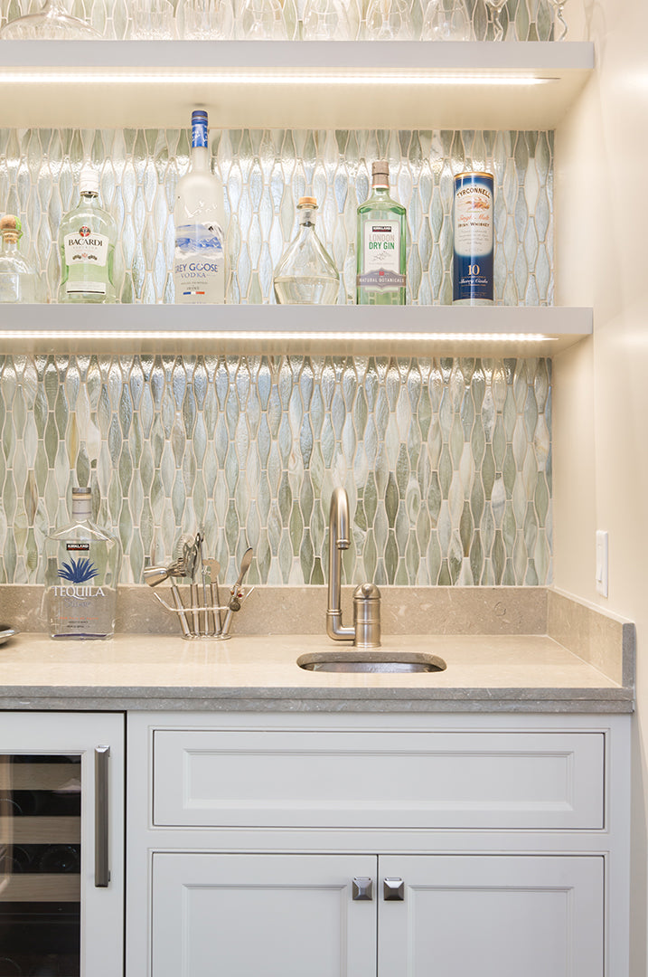 Agate Taiko in Pienza Pearl accents this Wet Bar wall.