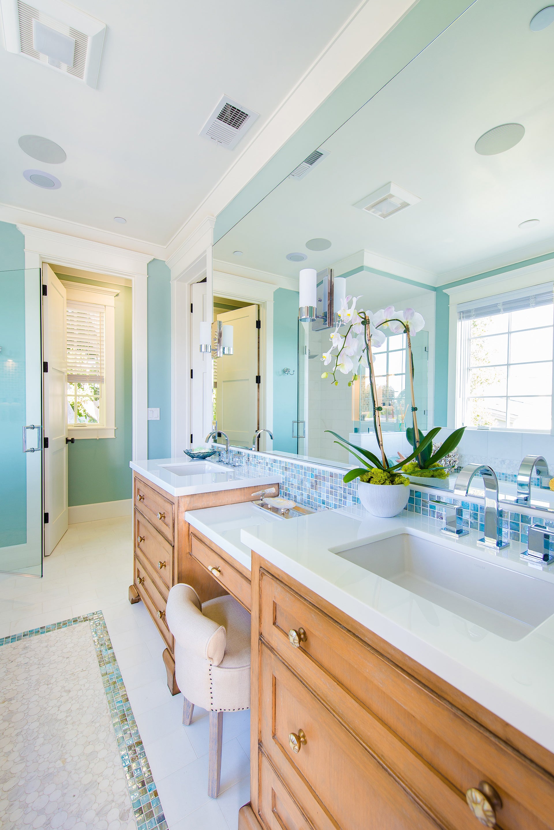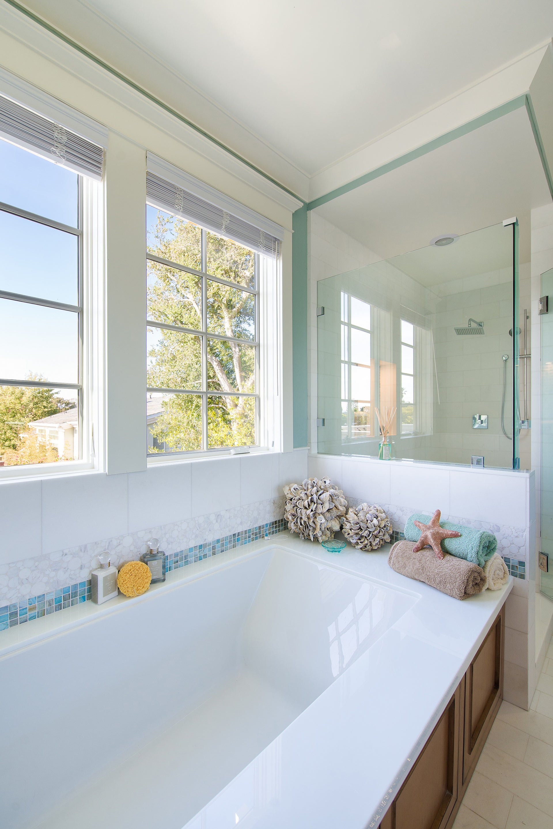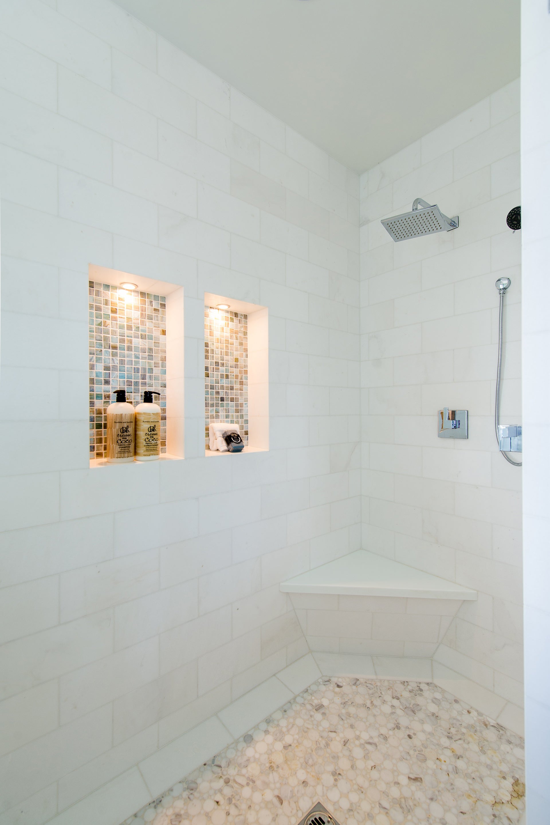 Agate 1x1 Mosaic in Firenze Pearl has been used as glass mosaic accents throughout this bathroom.