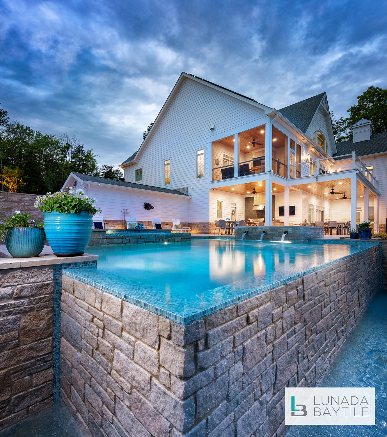 Fully clad pool in Haisen Barcode Azuline Natural.