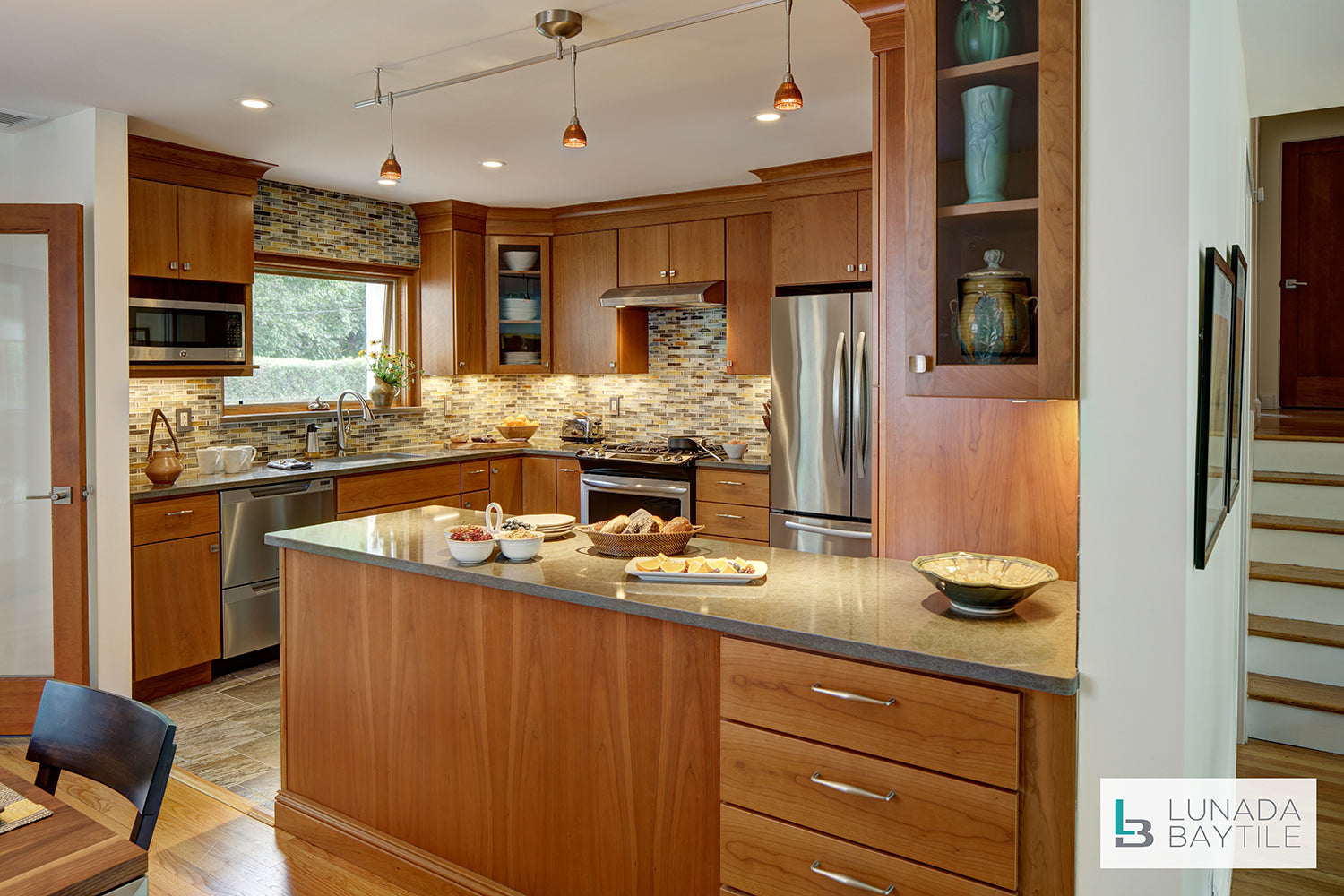 Tozen Tresse Indium Silk on kitchen backsplash.