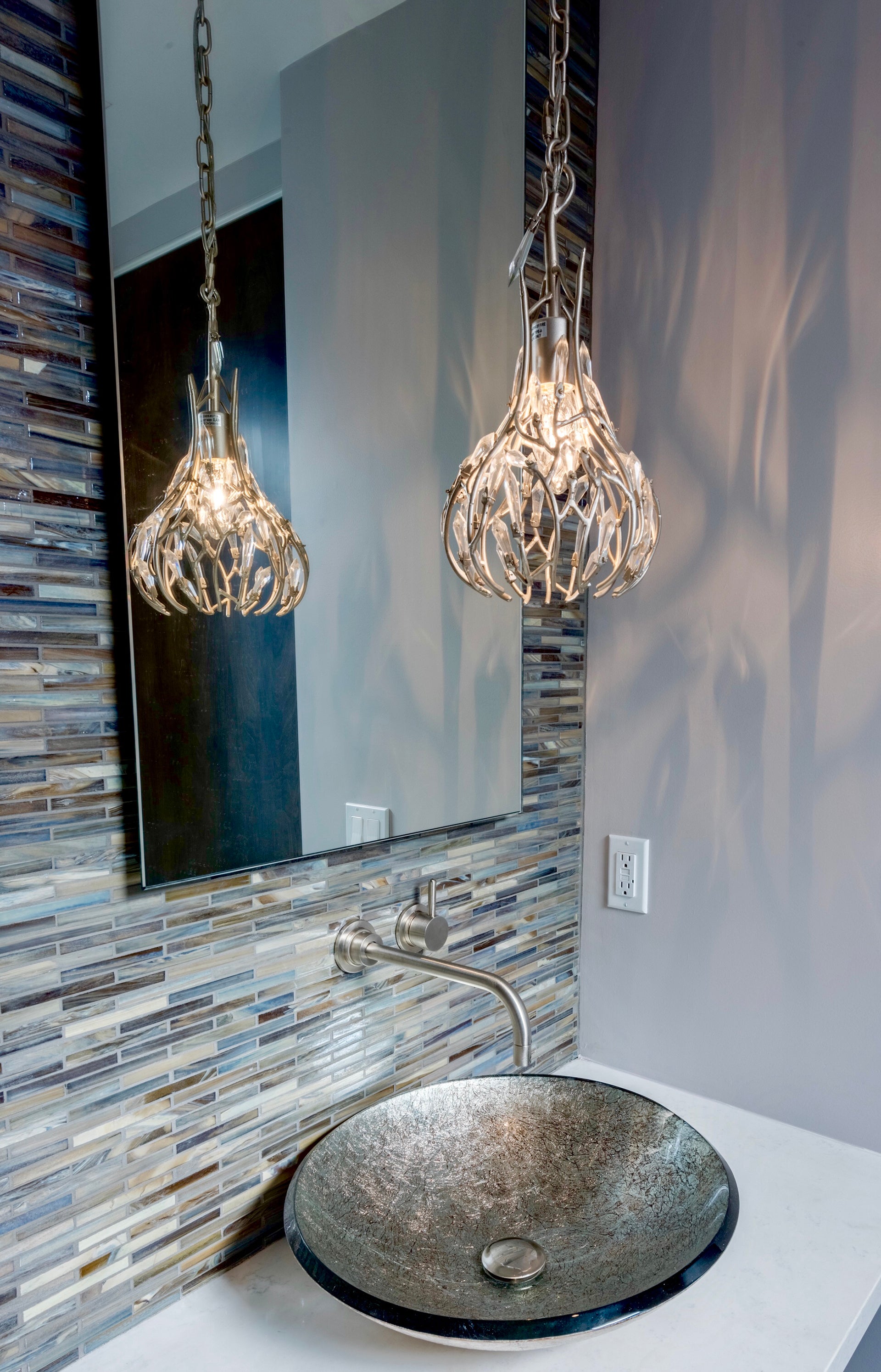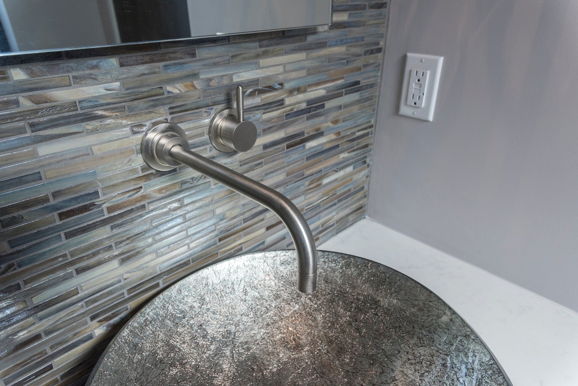 Agate ½ x 4 Brick Verona Pearl creates bathroom feature wall in the Lucia Container House - South Redondo Beach, CA.