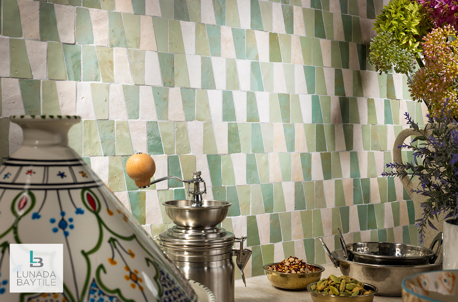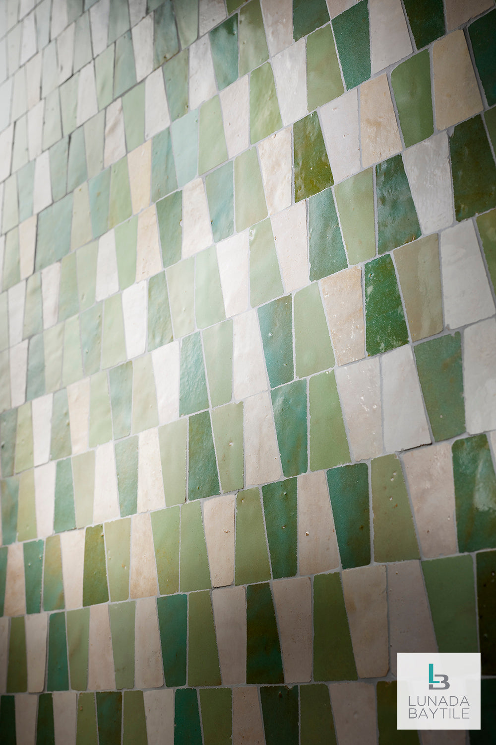 The Mistral collection reinterprets the heritage of Zellige tiles for the modern day. Time-honored methods perfected and passed over generations in Fez, Morocco create individual hand-chiseled tile pieces in modern shapes and patterns. Unique to Mistral, lead-free Italian glazes are applied to the Moroccan tiles to achieve a striking, fresh palette curated for today’s distinctive interiors and exteriors.