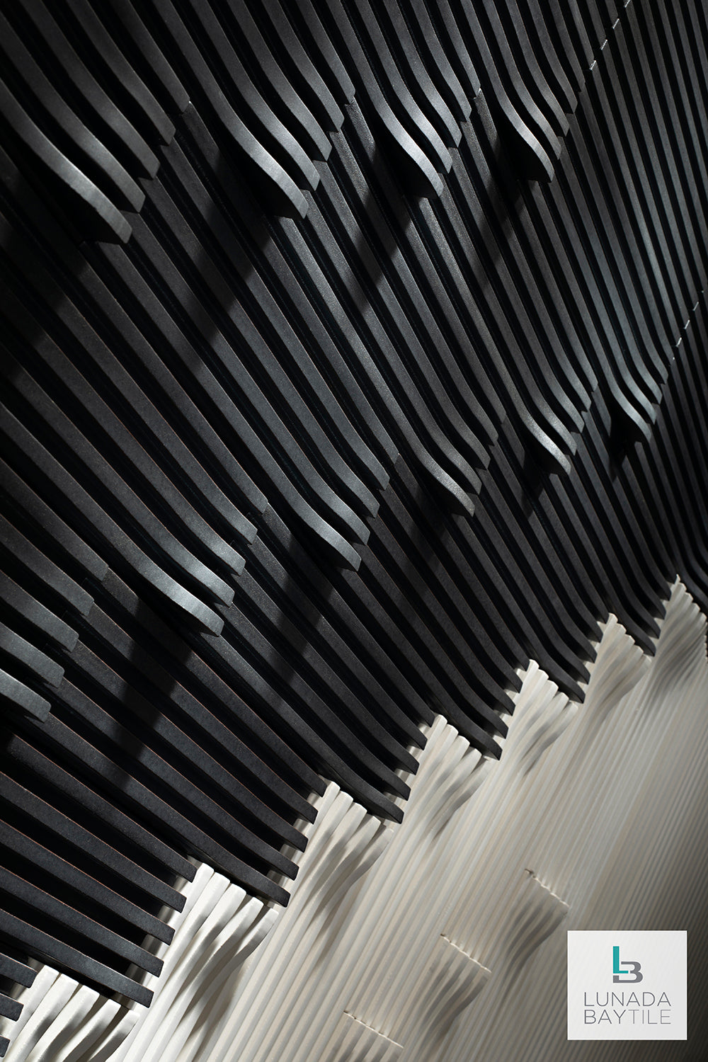 The three-dimensional ceramic tiles from the Momentum series feature sculptured lines of dramatic variation. An array of textures and patterns are possible through a single shape and color, or with a blend of shapes and/or colors puzzled together – the journey is yours to create.