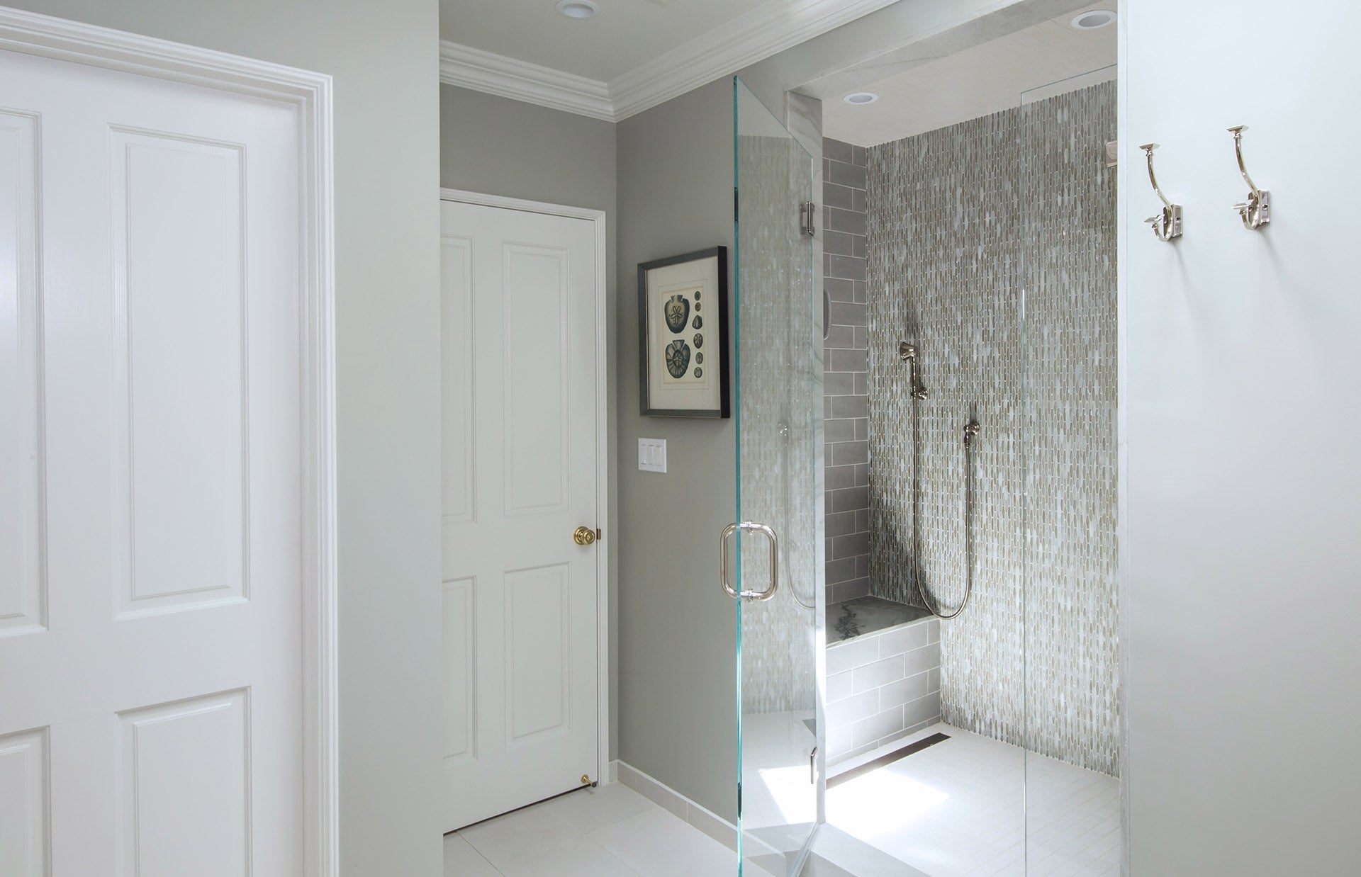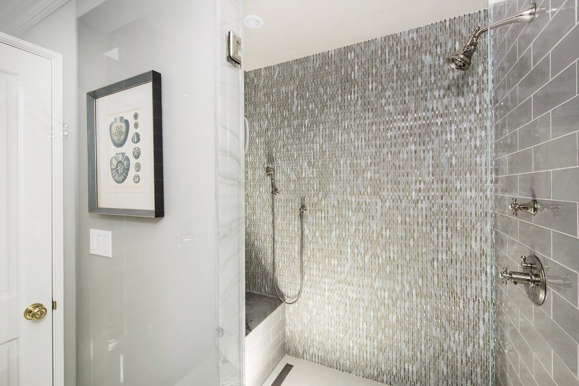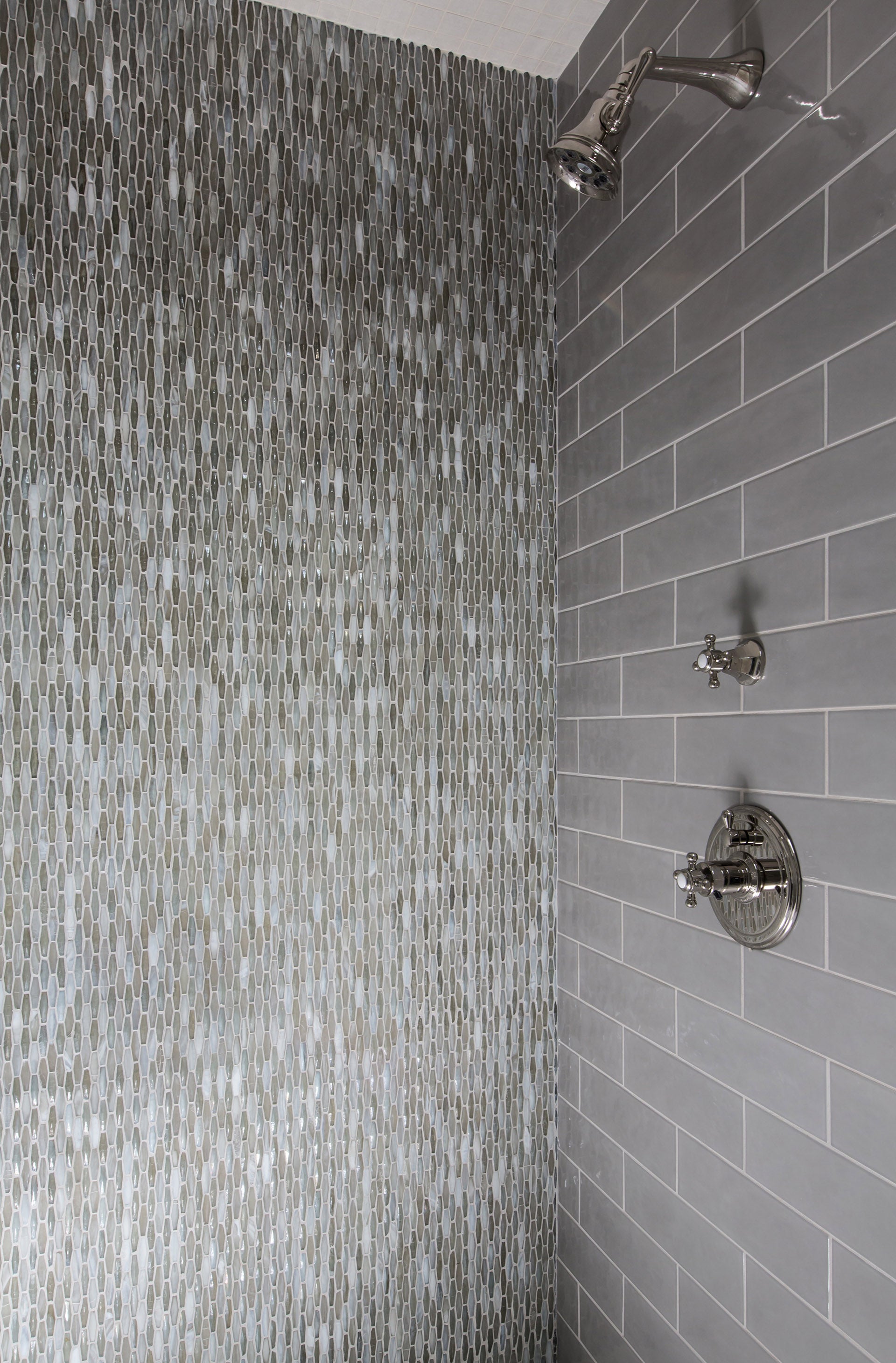 Origami Mosaic Vesper Twist in Bosa on master bath shower wall.