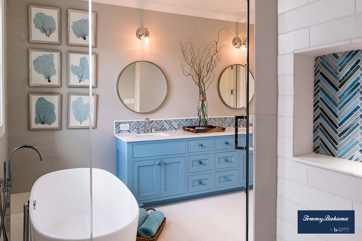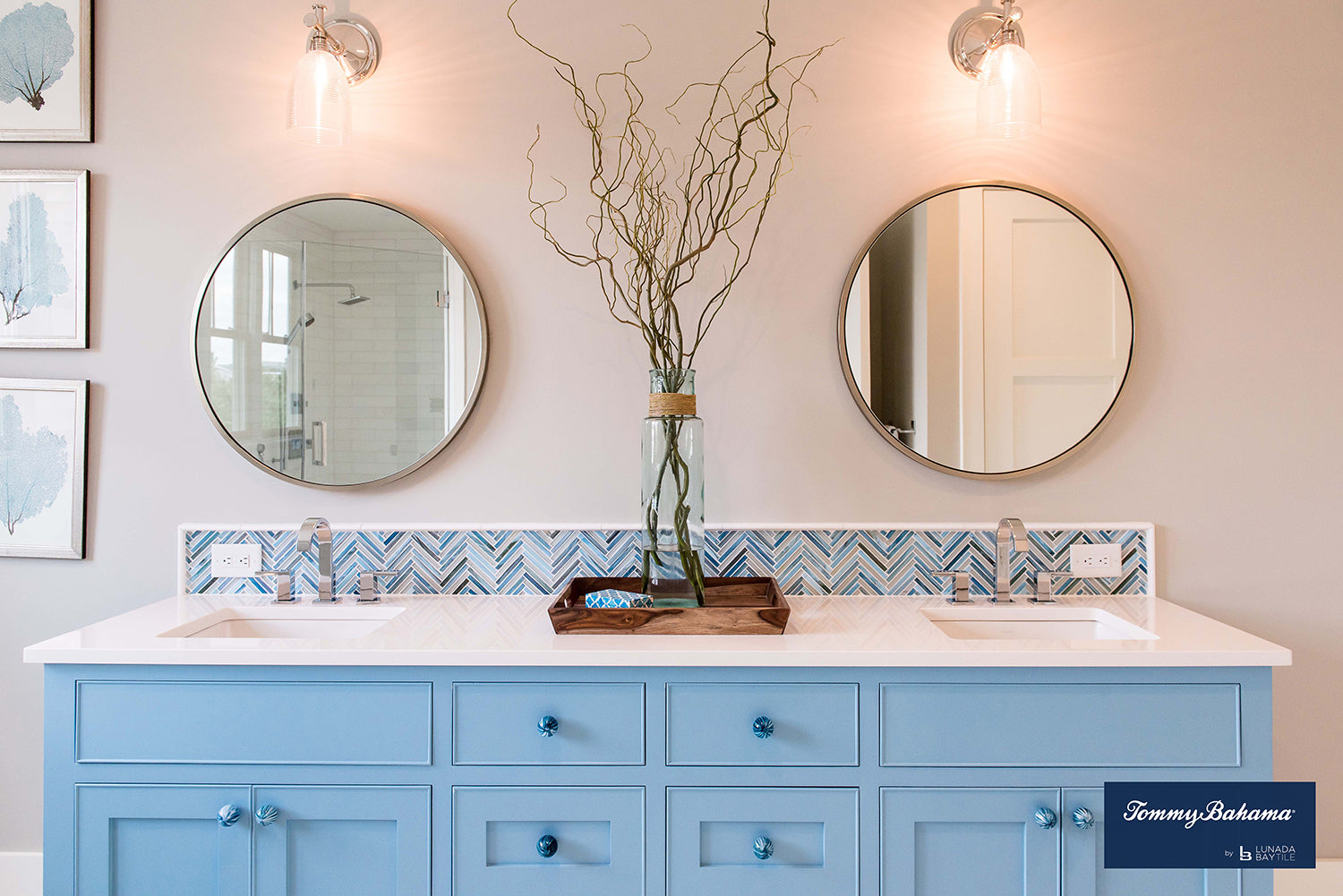 Tommy Bahama® mosaic tile brings happy pops of color to this coastal-inspired bathroom. This color blend was inspired by one of the most beautiful spots on the planet — Thailand's Surin Islands. The national park—an archipelago of five islands—is only accessible by boat. The Surin colorway is reminiscent of the islands’ pristine beaches, clear bays and lush jungles. It captures the spirit of the rugged islands and the intrepid adventurers who explore them.