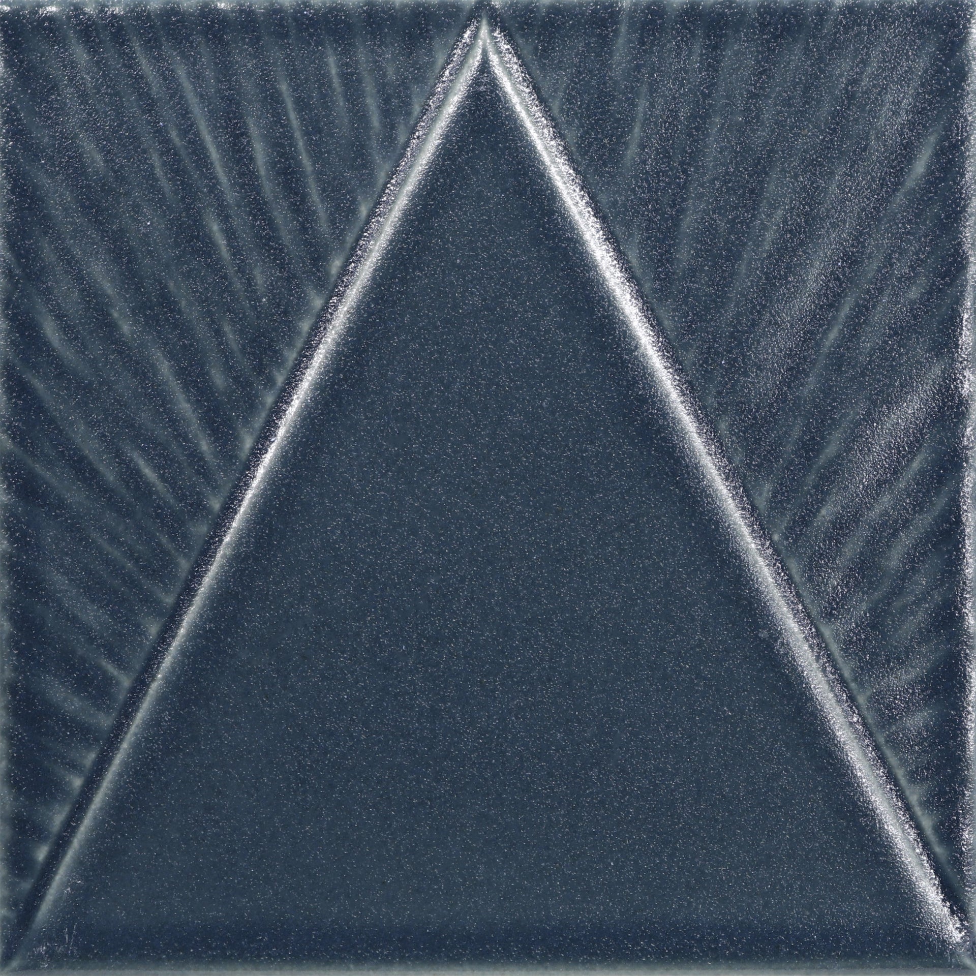 Hand-crafted ceramic tiles featuring three-dimensional relief and hand-sculpted texture emulate a facet, gem cut, arrow, diamond shape and more depending on how they are arranged. The square ceramic tiles can be placed in a variety of orientations and pattern combinations to design an even more personal space.